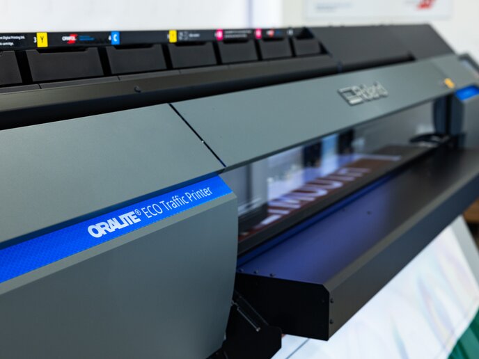 Der ORALITE® ECO Traffic Printer ist eine spezielle Lösung, um sowohl temporäre als auch permanente Schilder für die Verkehrssicherheit und Baustellenbeschilderung also auch Verkehrsschilder mit Bildern sowie vielfältige grafische Anwendungen zu produzieren. Mit seiner Fähigkeit, Verkehrsschilder nach den gängigsten nationalen und internationalen Normen (z.B. EN12899-1:2007 oder ASTM D4956-19) mit langen Nutzungsdauern herzustellen.Eine Herausragende Option speziell für Deutschland:In Verbindung mit den geruchsarmen Eco-Solvent ORALITE® 5017 Tinten und eigens von ORAFOL erstellten Druckumgebungen, ermöglicht das ORALITE® ECO Traffic Printer Drucksystem durch die direkte Bedruckung einer der transparenten ORALITE® 5021 Economy Cal PVC-Folie, mehrfach verwendbare Verkehrszeichen nach den Vorgaben der Güteschutzgemeinschaft für Verkehrszeichen und Verkehrseinrichtungen e. V. (GVZ) herzustellen. Die Verkehrszeichen entsprechen sowohl von den Farben als auch den Rückstrahlwerten den Anforderungen der RAL Güte- und Prüfbedingungen (RAL-GZ 628). Die Weich-PVC-Folie der Serie ORALITE® 5021 Economy Cal zeichnet sich durch eine hervorragende Bedruckbarkeit und die rückstandsfreie Wiederablösbarkeit aus und ist daher für den vorgesehenen Verwendungszweck besonders geeignet und zugelassen (Bei Verwendung der durch die GVZ freigegebene Materialkombination aus ORALITE® Grundfolie und ORALITE® Transparentfilm.)