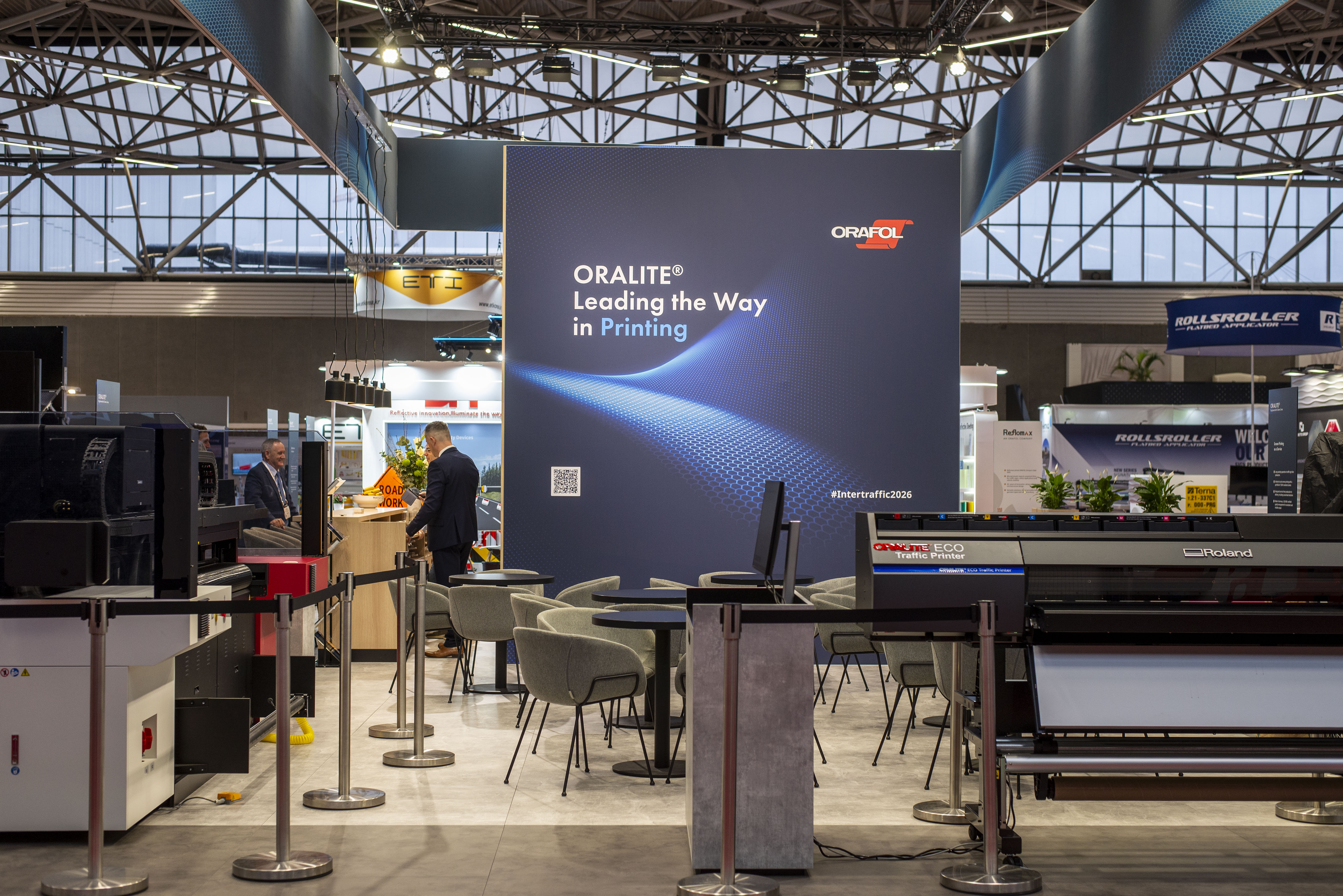 Auf der Intertraffic 2026 konnten Besucher täglich die Vorteile der ORALITE® Drucktechnologien in Live-Demonstrationen erleben. Dabei boten wir praxisnahe Einblicke in den Druckprozess, die Anforderungen an Zertifizierungen und die Integration in bestehende Produktionsumgebungen.