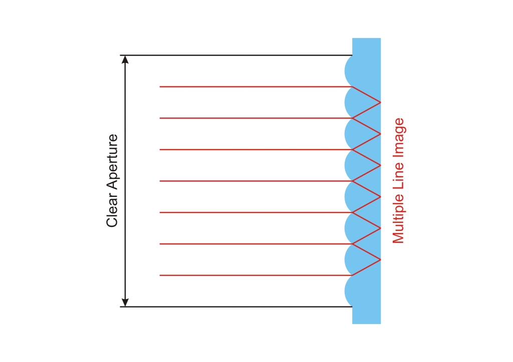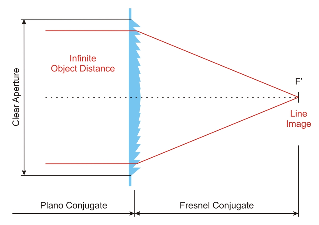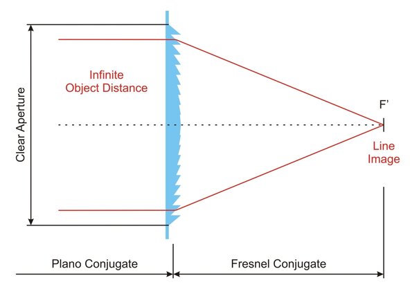 Fresnel Zylinderlinsen haben eine lineare Fresnelstruktur. Sie sammeln das Licht in nur eine Richtung. Anstelle einer Punktabbildung entsteht eine Linienabbildung.