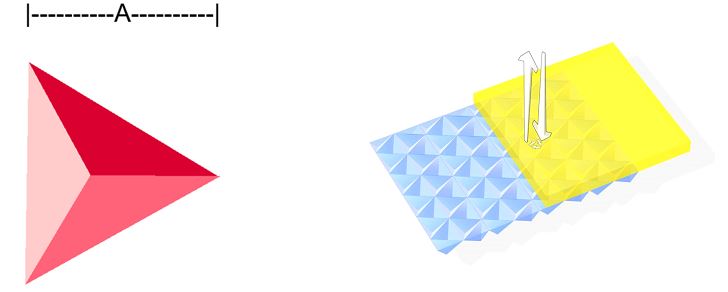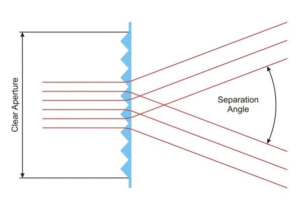 Ein Fresnel Strahlteiler hat eine lineare Struktur mit zwei Wirkflanken mit gegenüberliegenden Winkeln. Das Licht wird in zwei Strahlenbündel geteilt, wobei der Winkel zwischen den beiden Strahlenbündeln als Teilungswinkel bezeichnet wird.