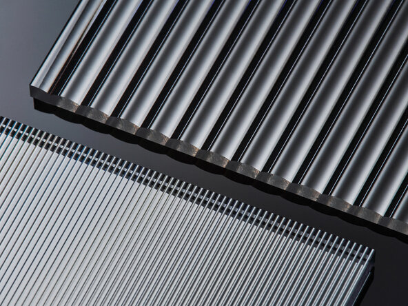 Die ORAFOL Division Optic Solutions bietet verschiedenste mikrostrukturierte Kunststoffoptiken für unterschiedlichste Einsatzmöglichkeiten an. Durch die Mikrostrukturen können optische Effekte realisiert werden, für die mit herkömmlichen, stetig geformten Optiken weitaus größere Bauräume notwendig sind. Das geringere Volumen der Optiken wirkt sich zudem kosten- und ressourcensparend aus.