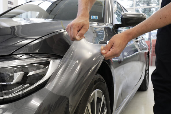 Steinschlagschutzfolien (PPF) von ORAFOL schützen Fahrzeugoberflächen vor Kratzern, Steinschlägen und Witterungseinflüssen mit selbstheilender Technologie. Die klare Beschichtung ist widerstandsfähig gegen Abrieb und Wettereinflüsse und erhält das Neuwagen-Design. Die Folie ist nahezu unsichtbar, während der Montage repositionierbar und haftet nach der Installation fest. Sie bildet eine unsichtbare Schutzbarriere und ist pflegeleicht.