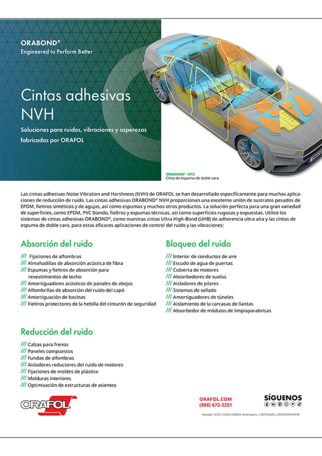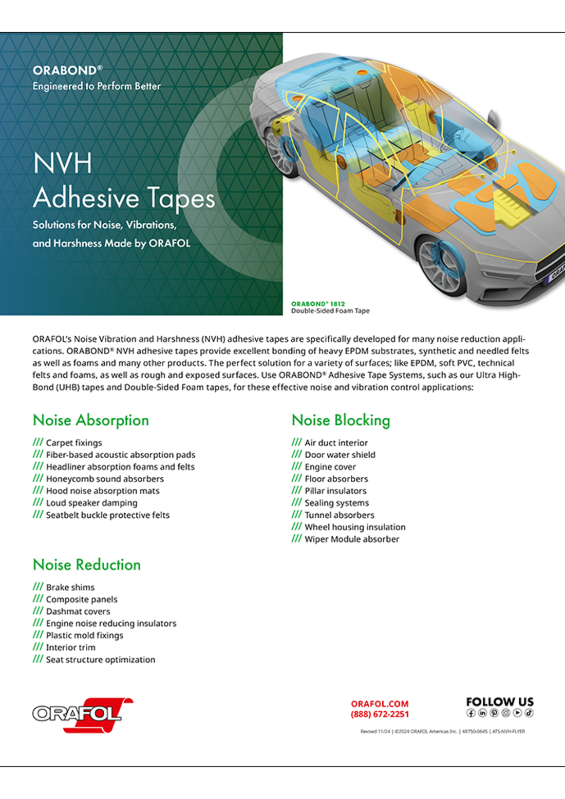 Cintas adhesivas NVH Soluciones para ruidos, vibraciones y asperezas fabricadas por ORAFOL