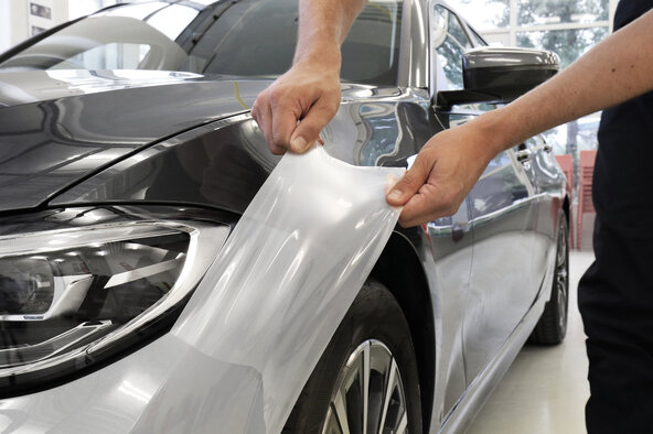 “The TPU base film from the Advanced TPU Films Division in the US is coated in several steps with adhesive and a topcoat,” he says. This produces different surface properties, such as lotus effect, high gloss, or varying levels of matte finish. The choice of adhesive ensures that the PPF is easy to install, adheres securely over time, and can be removed without residue if needed. This expertise lies within the Adhesive Tape Systems Division, Dr. Limberg explains.