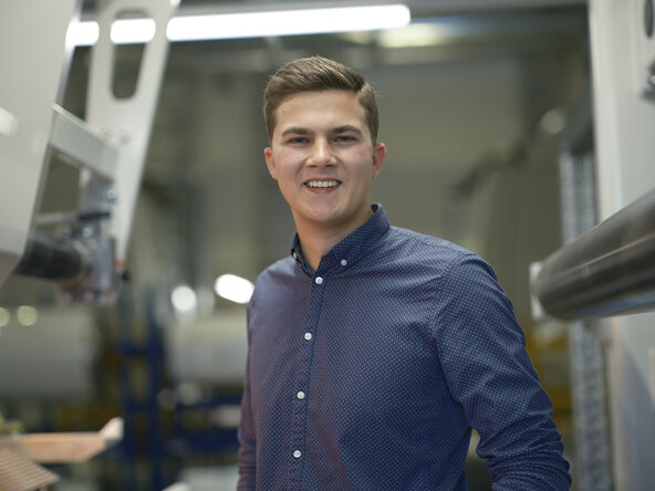 Before starting my studies, I completed an apprenticeship as a machine and plant operator at ORAFOL, which is particularly helpful in my current position. My degree started with a trainee program, where I changed departments every six months. So I got to know all the departments, including Purchasing, Human Resources, Production Planning and Production Management. Having this mix was hugely important for my skills and for understanding the interrelationships within the company.