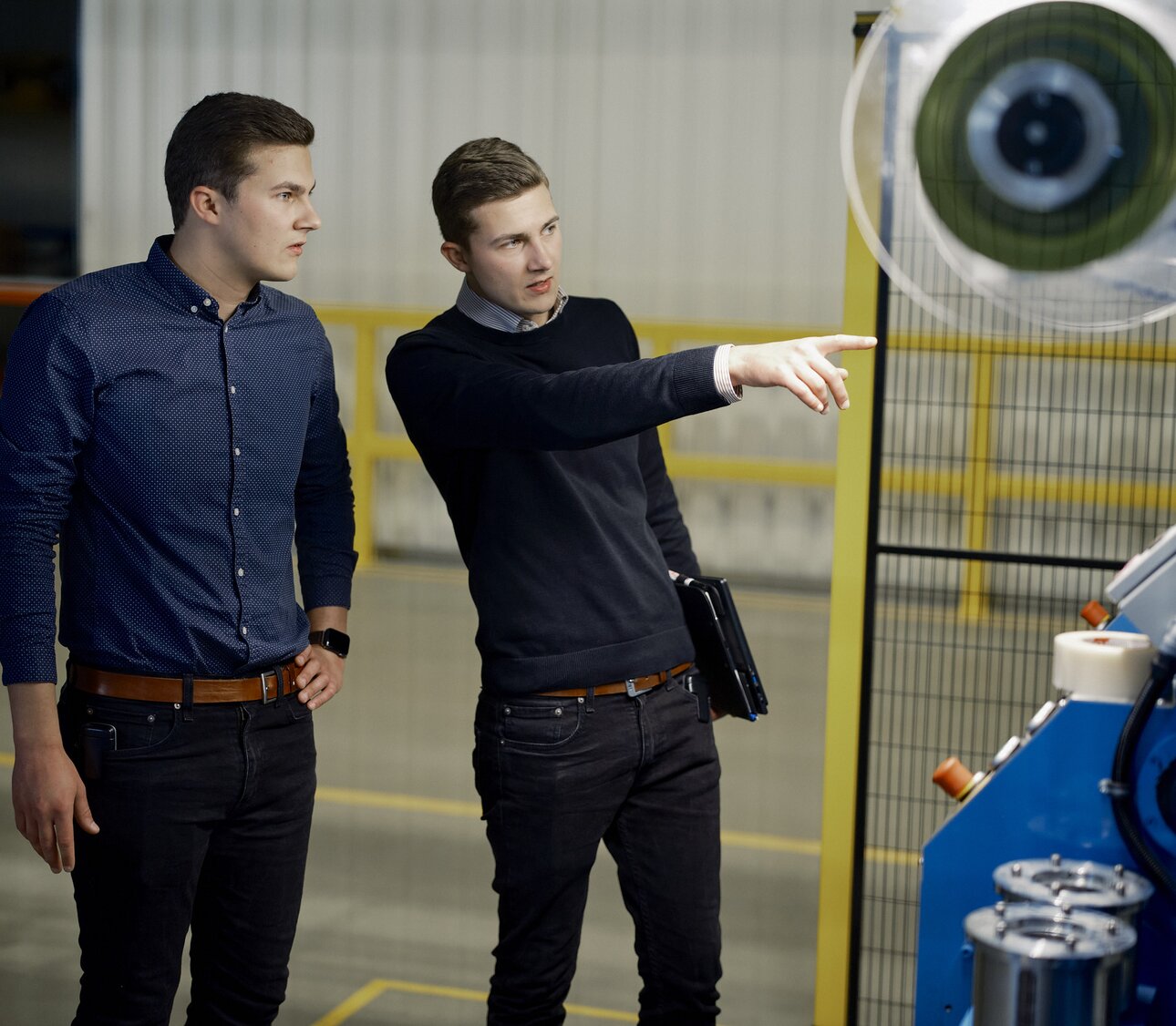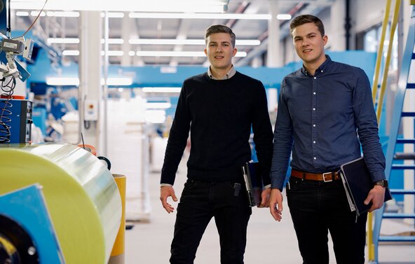 Twin brothers David and Tobias Stangel were born in Berlin and moved with their family to Oranienburg shortly thereafter. Today, their commute to work takes just ten minutes. After completing their vocational training as machine and plant operators at ORAFOL, they both pursued a part-time degree in industrial engineering with a focus on logistics and supply chain management. Now, each of them holds responsibility as an operations manager in a different area of ORAFOL’s production. We spoke with them about the experiences that shaped their journey and what they value most about their work. One thing is clear from the start: the similarities go beyond appearances.