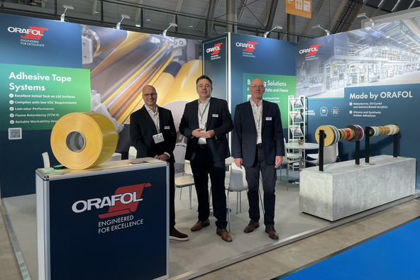 For such specialised requirements, ORAFOL develops acrylic dispersions tailored to diverse customer needs. These adhesive solutions are coated onto carrier materials at the Oranienburg site, converted, delivered, and laminated by the customer onto the substrate. “Here, we draw on decades of experience. No two adhesive solutions are alike.”
