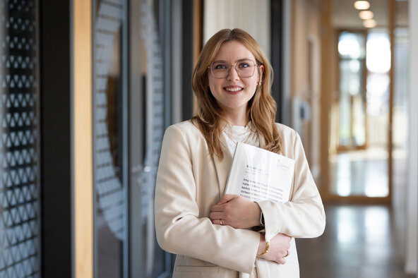 During her studies in Eberswalde, Leonie Sonnenberg learns how companies can operate both successfully and sustainably. As a working student in Oranienburg, she experiences how companies tell their own stories. She writes texts for the internal newsletter that regularly shares updates from the ORAFOL world, and helps organise the Family & Friends Day - an event where relatives and friends are invited for guided tours of the site and production facilities. She then becomes increasingly involved in external communications - addressing customers and contributing to website content. “That was the first time I realised how challenging it is for a large international company to present a consistent image externally,” she says.