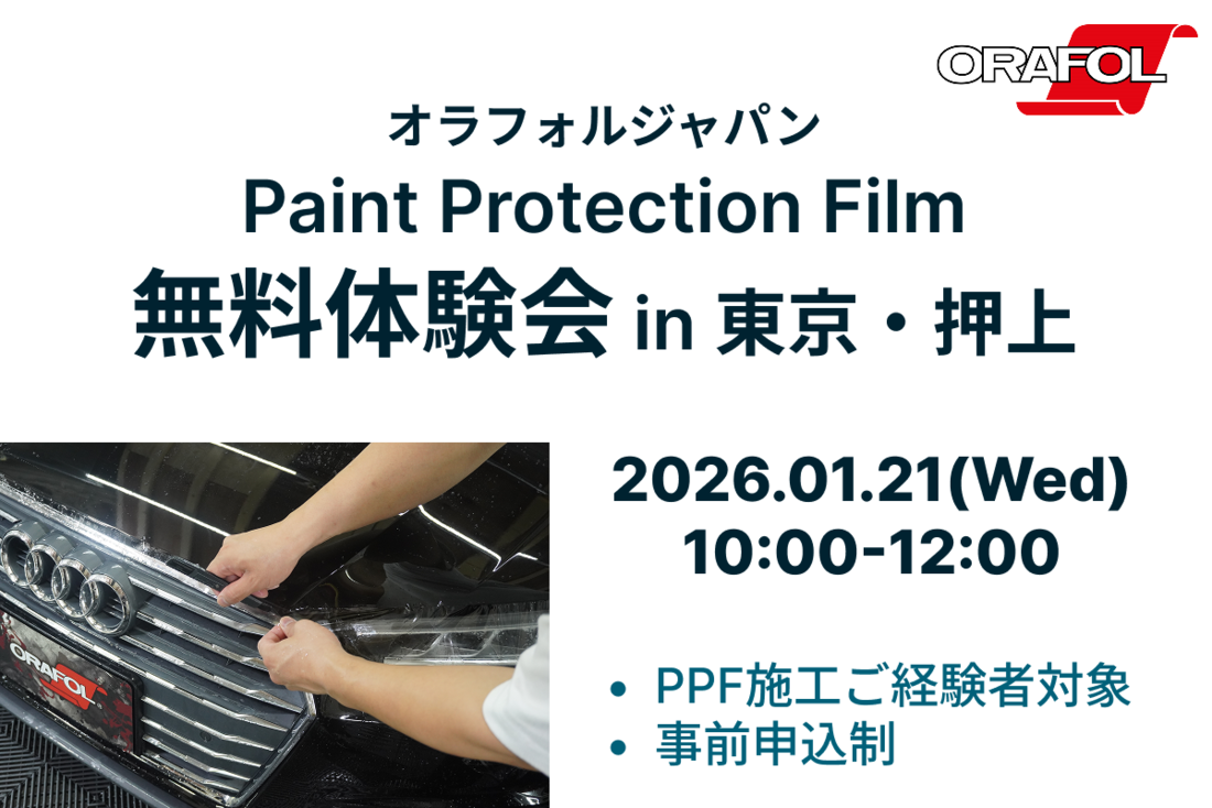 1月のイベントとして、ORAFOLペイントプロテクションフィルム無料体験会を開催いたします。