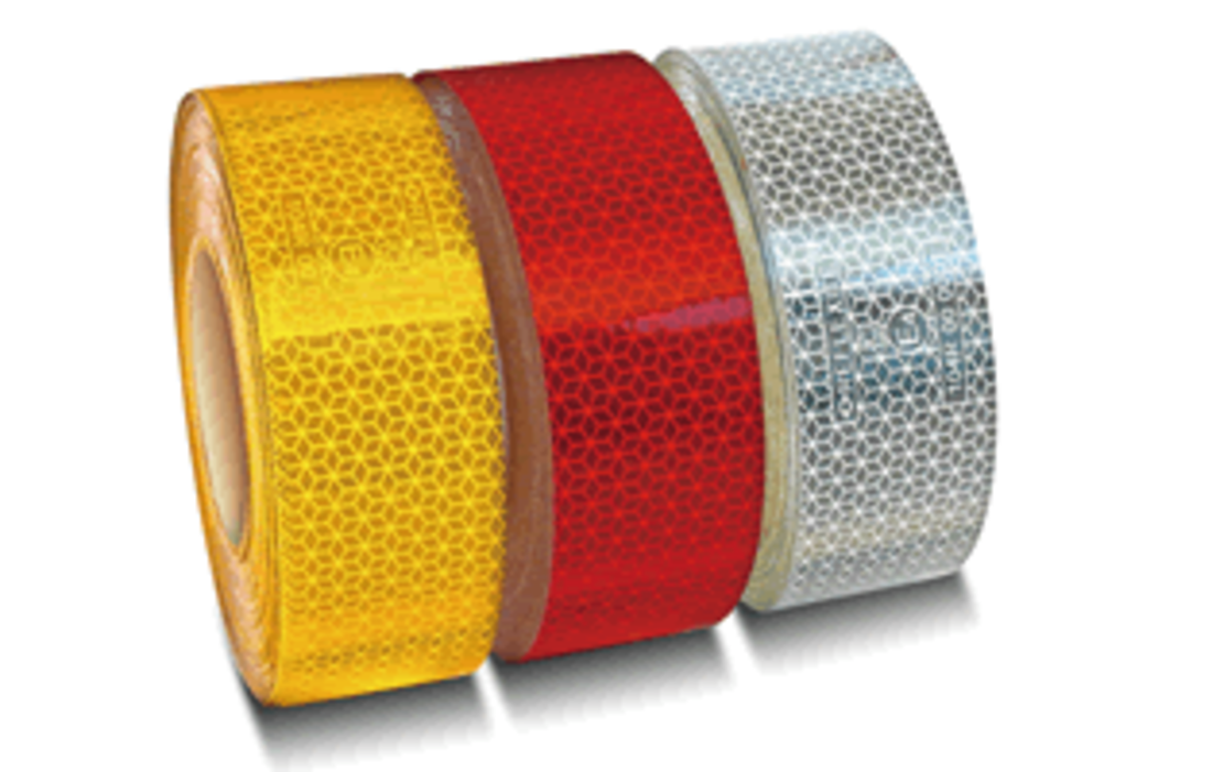 オラフォルの超高輝度マイクロプリズム反射素材の表面には、オラフォル製品である証のプリズムマーク(下記3種類のいずれか)が刻まれています。また、 JV104E Plusおよびマリンテープには、型式承認品であることを証明するマークが刻印されています。