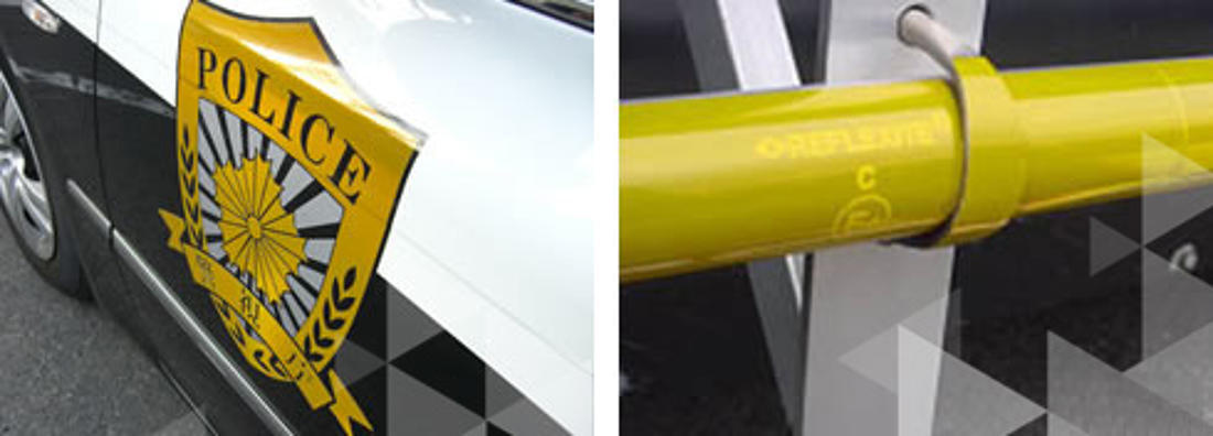 ORALITE®(オラライト)の超高輝度マイクロプリズム反射素材は、国土交通省、警察や消防、JRなどの制式仕様製品に適しています。